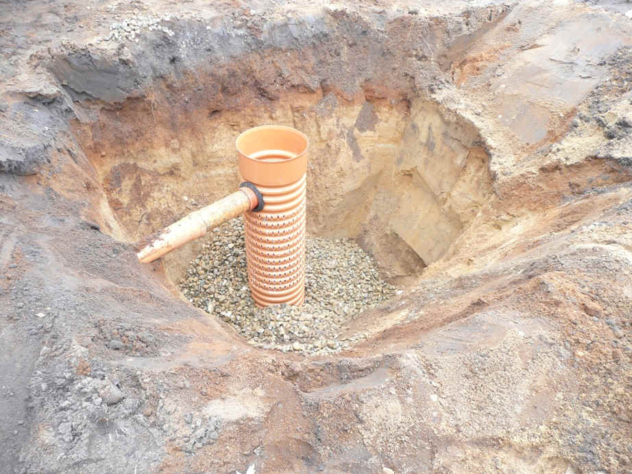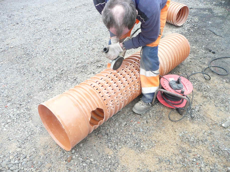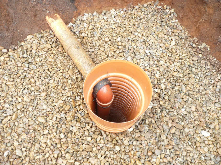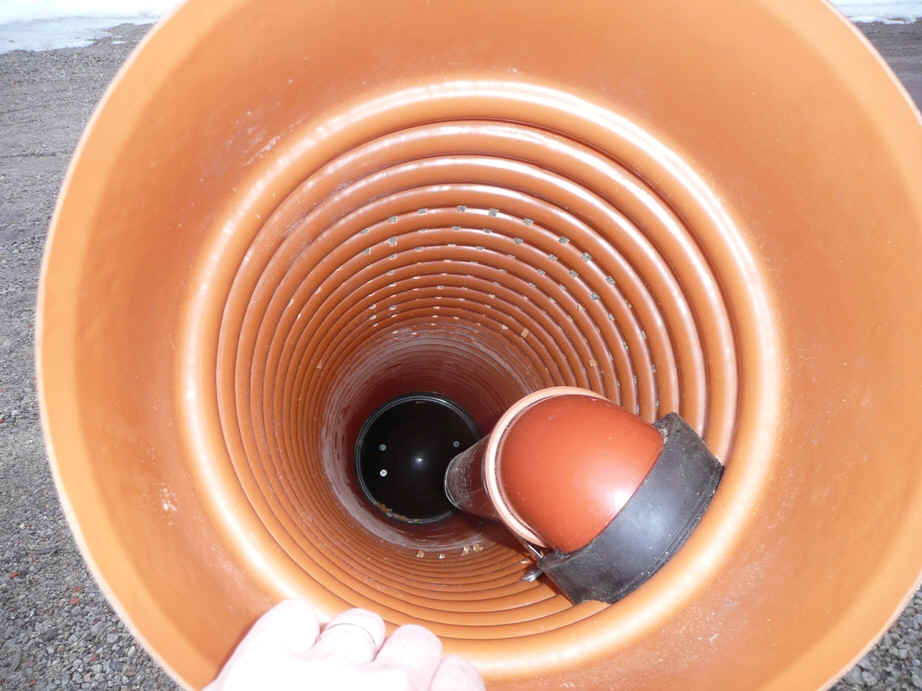 - Øverst indløbet, som er ført ned i sandfanget, se de 4 skruer